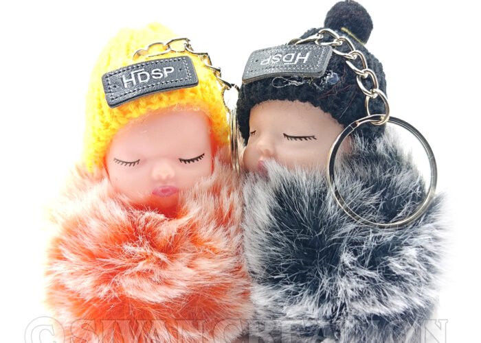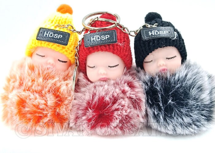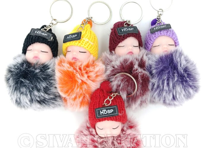 Bring extra cuteness to your everyday essentials with this 2PCS Sleeping Baby Doll Keychain set. Each keychain features a soft plush baby and a fluffy faux fur pom pom, perfect for decorating your bag, purse, car keys, or backpack. A fun, cozy accessory for women, girls, and kids—arrives as a random color pair.