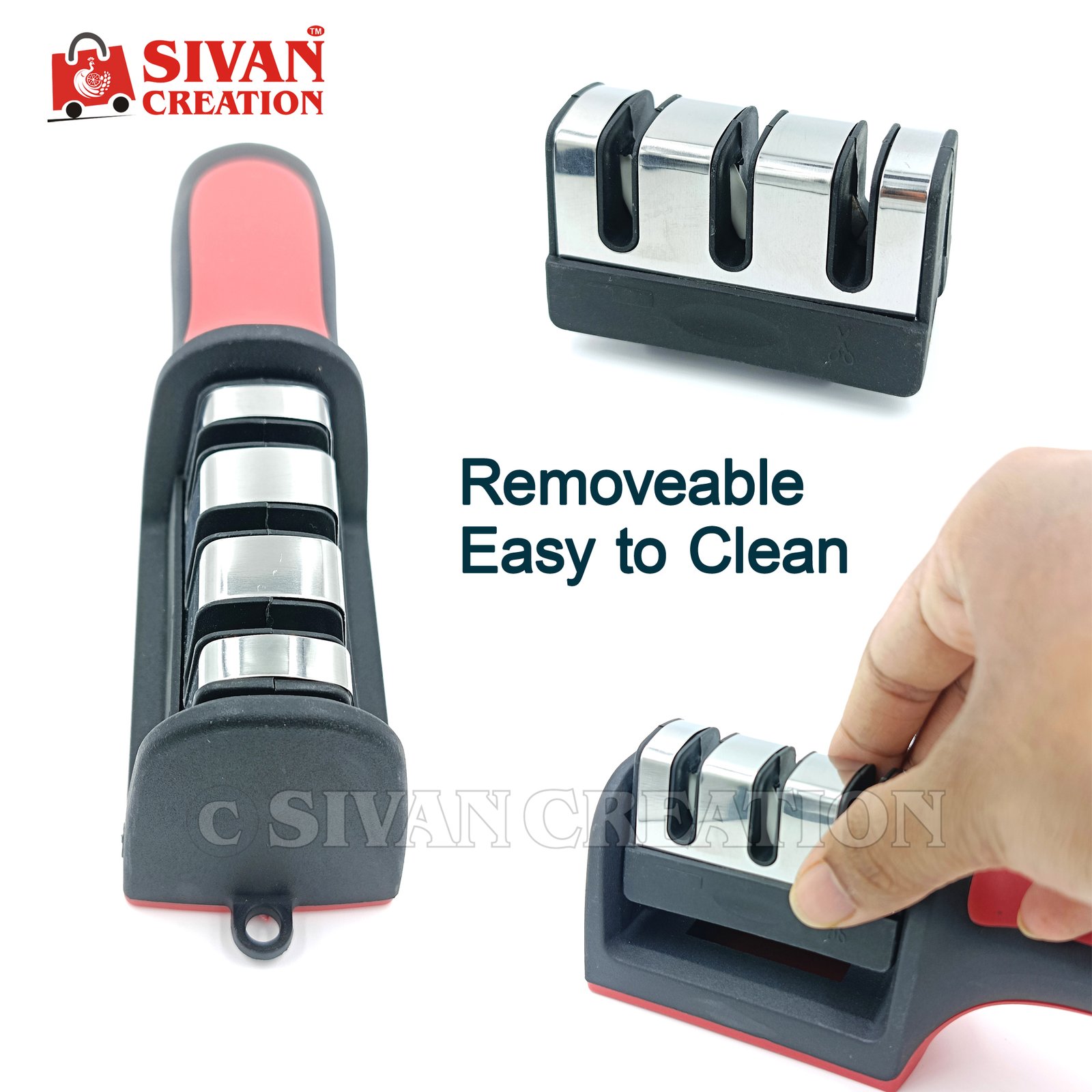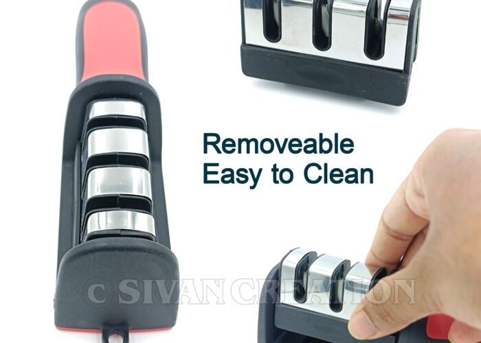 The ergonomic handle provides a comfortable and safe grip, while the non-slip base keeps the sharpener stable during use.