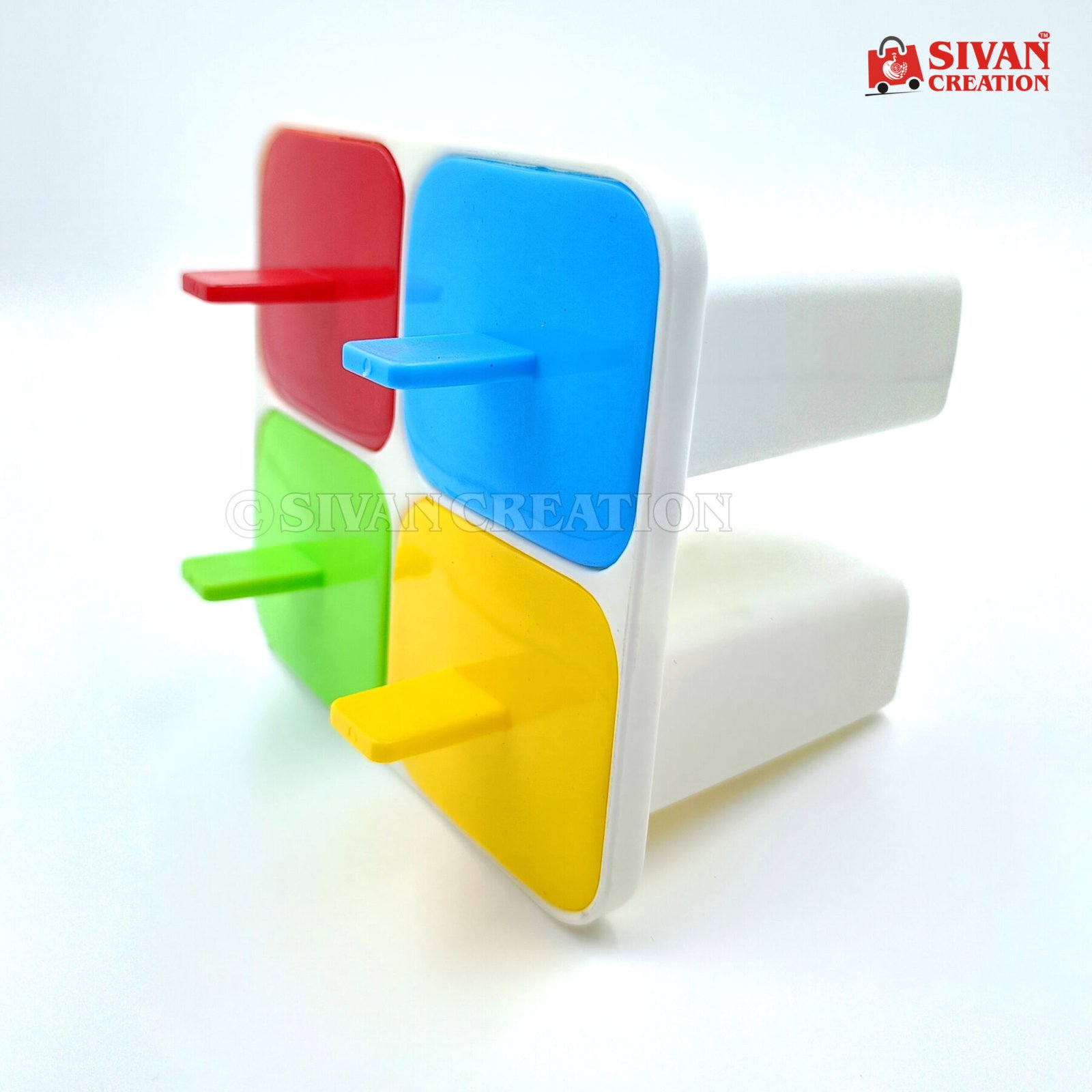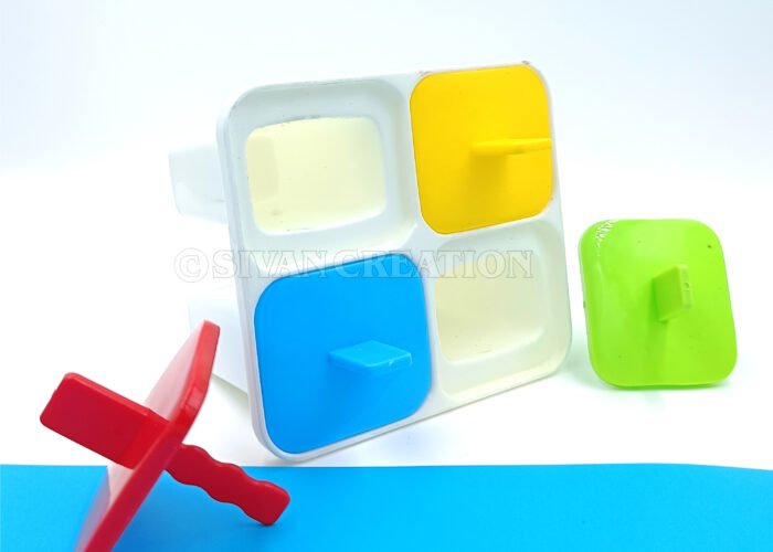 Make delicious homemade ice candy, kulfi, popsicles, frozen juice, chocolate pops, and ice cream with this 4 Slot Popsicle Mold Set. Made from high-quality food-grade plastic, this mould is safe, durable, reusable, and easy to clean.