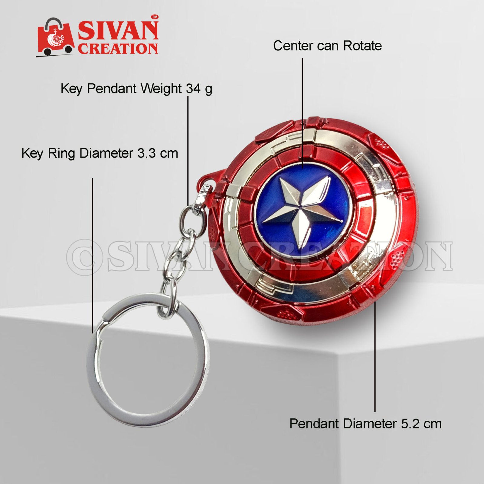 Upgrade your everyday carry with this premium Captain America spinning metal keychain, featuring a durable alloy build and a smooth, free-spinning shield design—perfect for Marvel fans, collectors, and anyone looking for a stylish superhero keychain