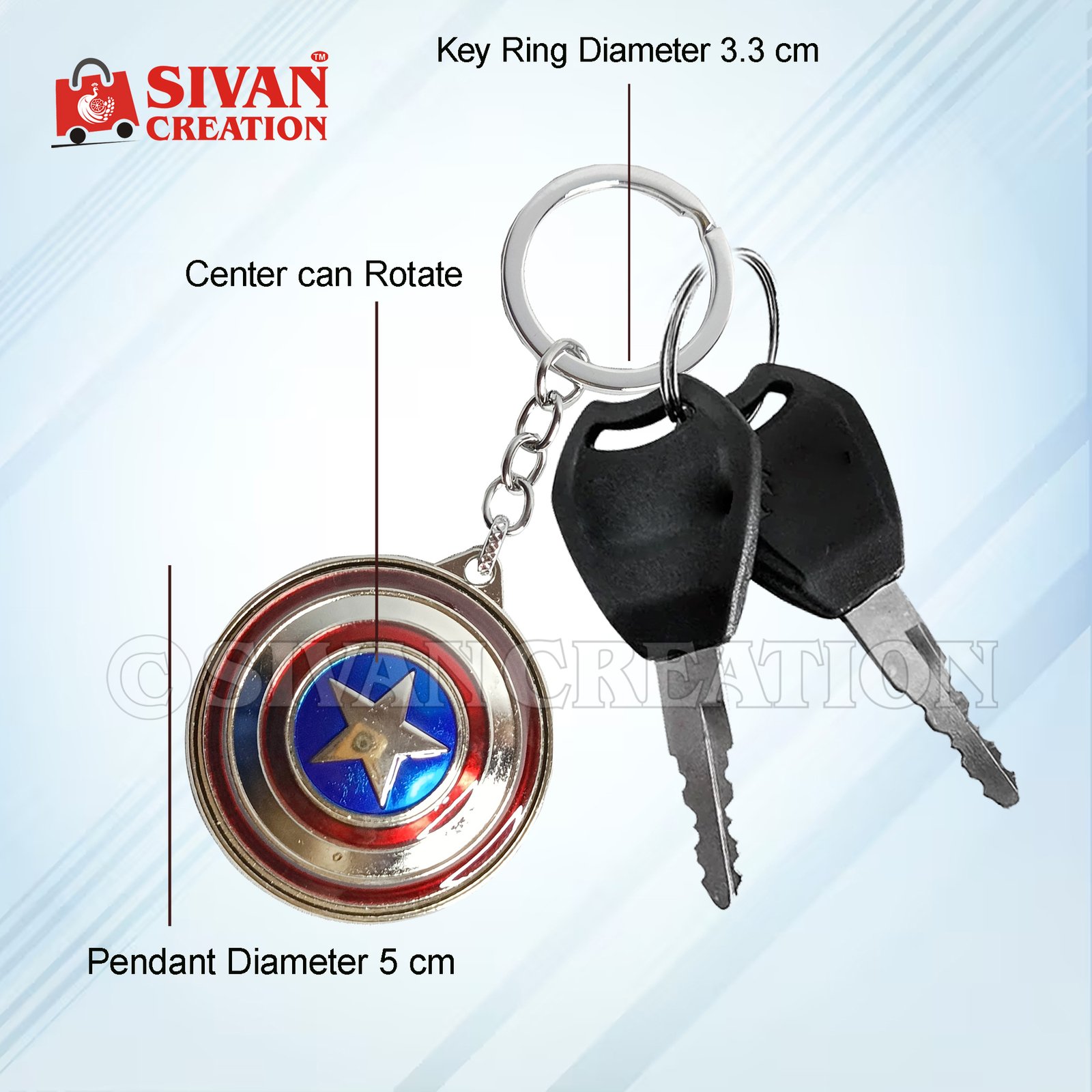 Perfect for Marvel lovers, collectors, and fans of the Avengers movies, this spinner keychain adds personality to your keys, bag, backpack, or cosplay gear. Whether you’re looking for a unique fan gift, a collectible accessory, or a stylish keyring with superhero flair, this rotating shield keychain is an ideal choice.