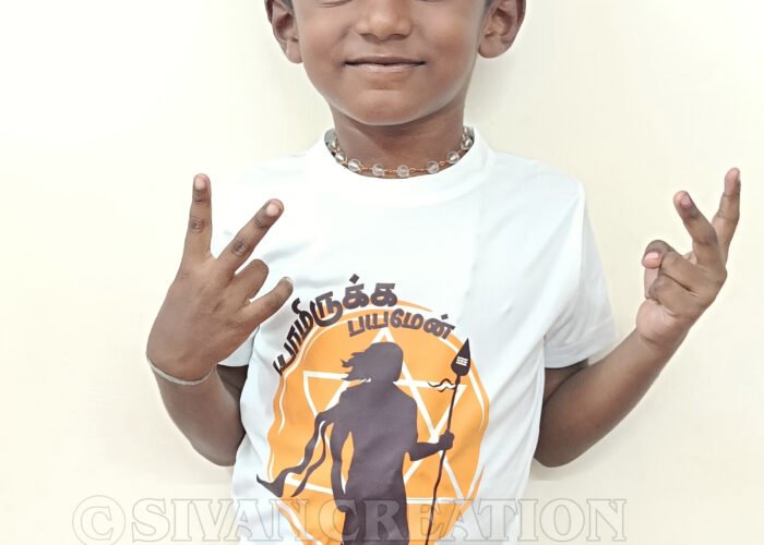 This t-shirt is made from high-quality soft cotton fabric that is gentle on kids’ skin and comfortable for all-day wear. The HD digital print ensures the Murugan image and Tamil text stay bright and fresh even after multiple washes.