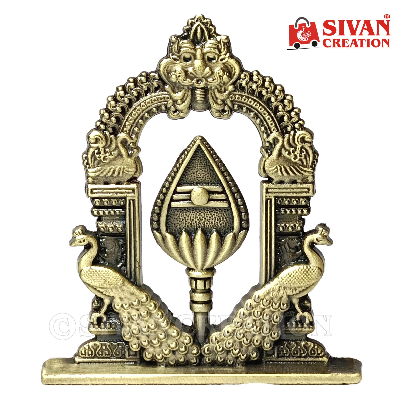 Invoke the blessings of Lord Shiva with this exquisitely crafted Metal Shivling Idol with Peacock Arch. This Shivling showpiece features a beautifully designed decorative arch, elegant peacock motifs, and a finely detailed Shiva lingam, making it a perfect addition to your home temple, pooja room, office, or spiritual decor space.
