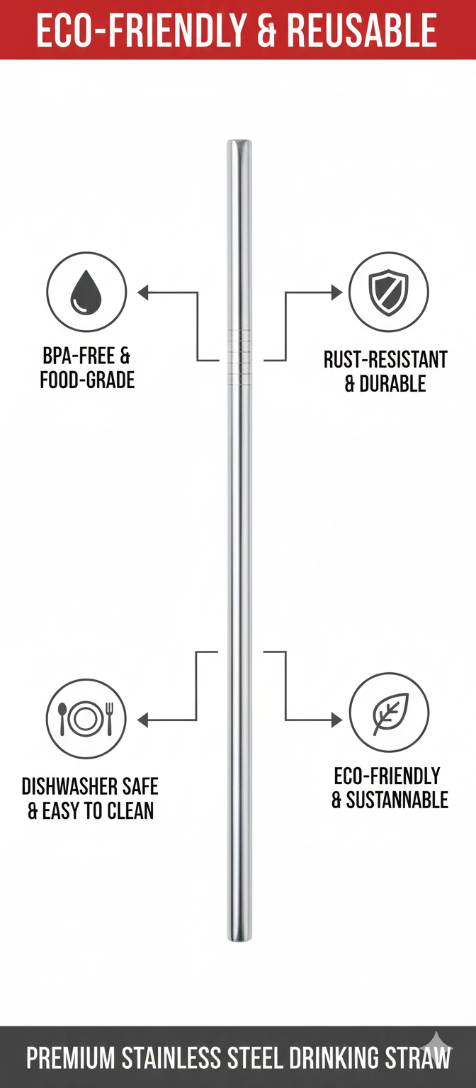 Make an eco-conscious choice with these reusable stainless steel drinking straws, designed to replace disposable plastic straws without sacrificing convenience or style. Crafted from high-quality stainless steel, these straws are durable, rust-resistant, and built for long-term use, making them ideal for everyday beverages.