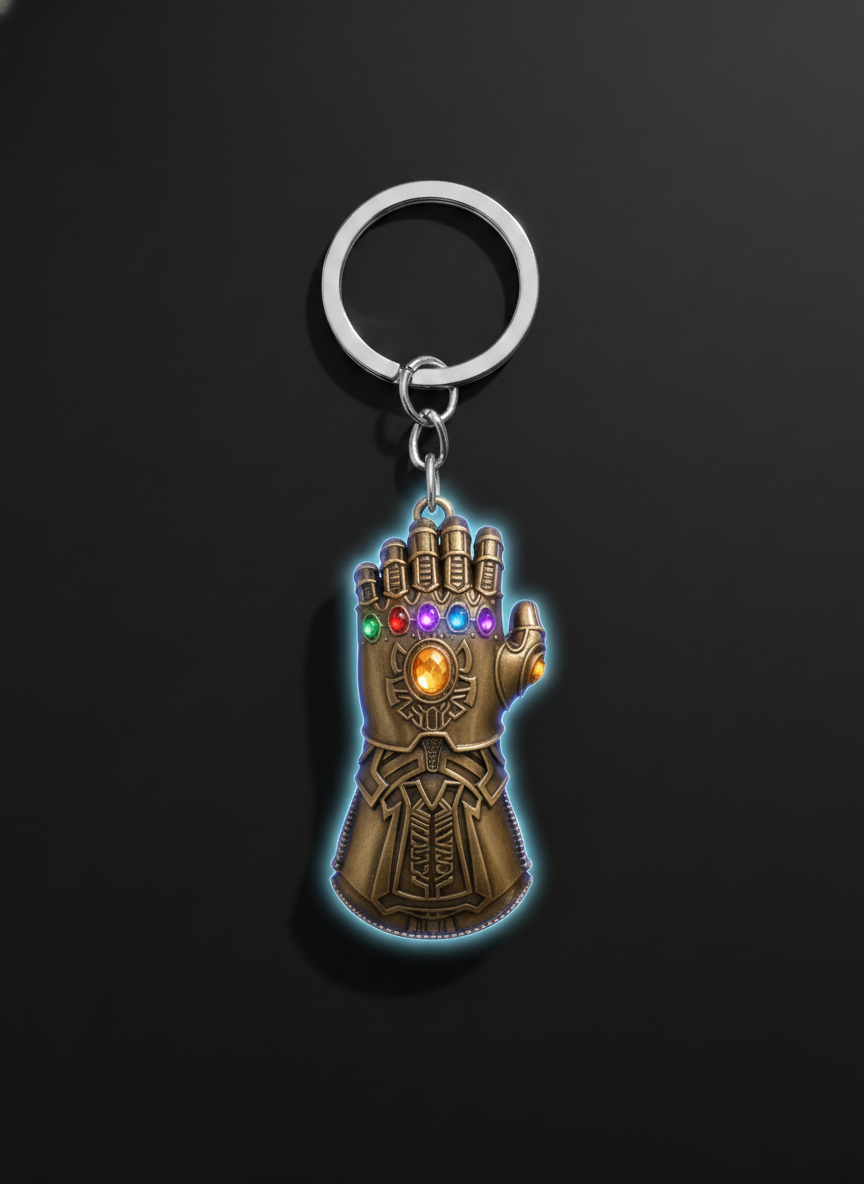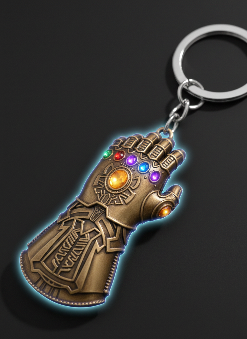 Premium Thanos Infinity Gauntlet metal keychain inspired by Marvel Avengers. Powerful superhero accessory perfect for Thanos fans and collectors.